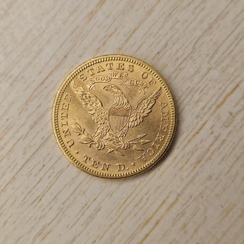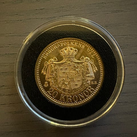Gullmynten veier 8,96 gram å er preget i 900 gull (= 8,06 gram 999 gull).