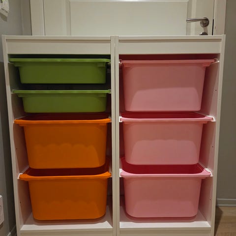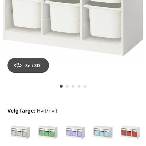 Kjøpt ny på IKEA i oktober. Lik som på bildet, men er 2 store skuffer og 6 små. Alle er hvite