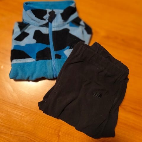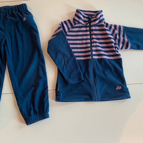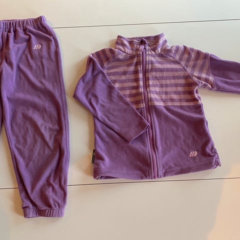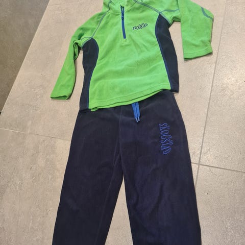 Pent brukt Skogstad fleece-sett str. 110/5 år. Tynn og myk fleece. Ingen flekker eller hull. Røykfritt og dyrefritt. Kan hentes i Trondheim sentrum eller sendes.