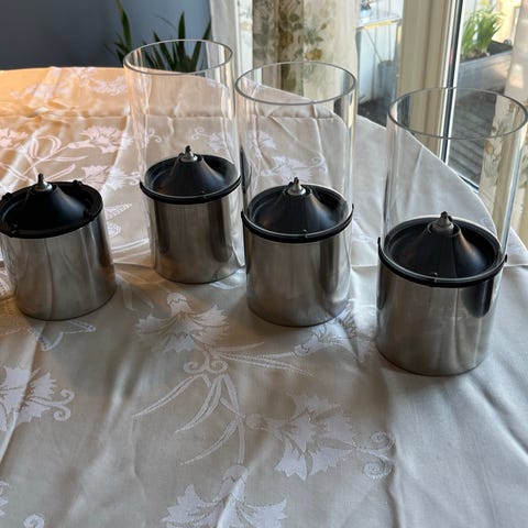 Stor og stilren lyslykt fra Stelton - ny i eske. Måler 28,5 cm høyde og Ø 14 cm. Modellen heter Hurricane classic, med stor sylinder i glass og svart fot. Kan brukes både inne og ute, til både levende lys og LED-lys. Designet slik at regnvann renner ut av seg selv.