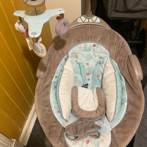 Lekematte, som kan «brettes» opp i kantene, leker som kan henges fra stammene.