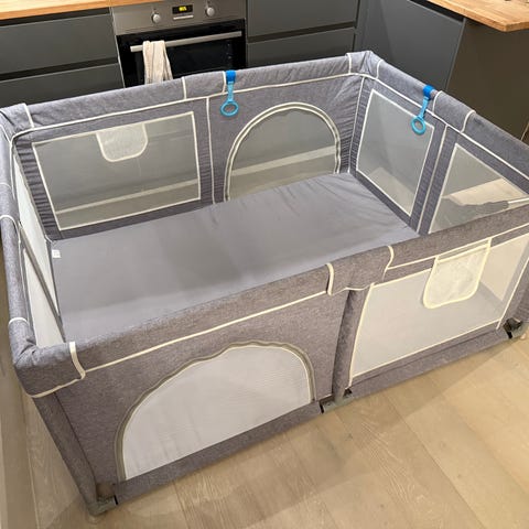 Stor, praktisk lekegrind fra Lionelo med plass for kreativ lek. Perfekt når du vil ha hendene frie til annet, samtidig som barnet ditt hviler eller leker trygt.