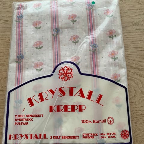 Krepp sengesett med koselig småblomstret design. Putetrekk og dynetrekk. Glidelåslukning i bunn av dynetrekket.
