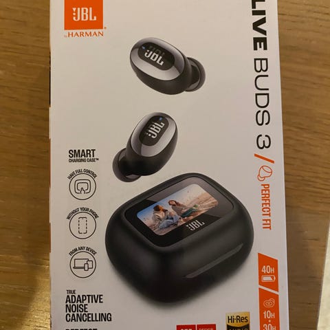 JBL LIVE BEAM 3 ørepropper i fargen lilla. Kun brukt 2 ganger, fikk de ikke til å passe ordentlig i ørene mine 🥲😩 Men veldig god lyd, og batteri!!🤩🙏🏼