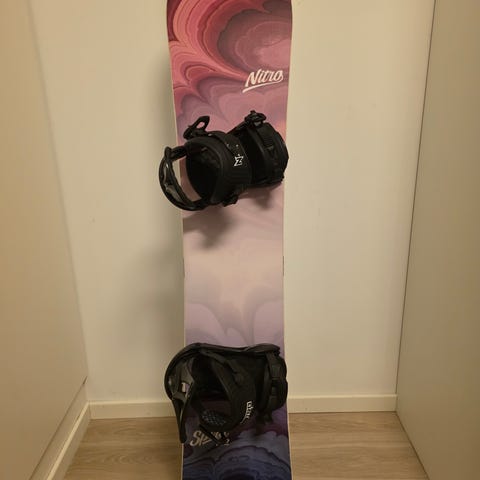 Tøft Lamar tripper snowboard med bindinger selges. Hel trekjerne. Noen striper og hakk på oversiden, og bør selvfølgelig med fordel glides før det tas i bruk. Den ene bindingen er byttet og funker fint.