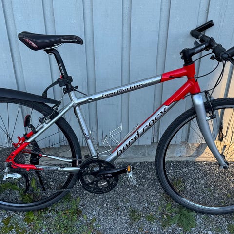 Monark Hybrid sykkel for unisex bruk. Sykkelen har en hybridramme som kombinerer egenskaper fra både terreng- og landeveissykler, egnet for variert terreng og daglig bruk.