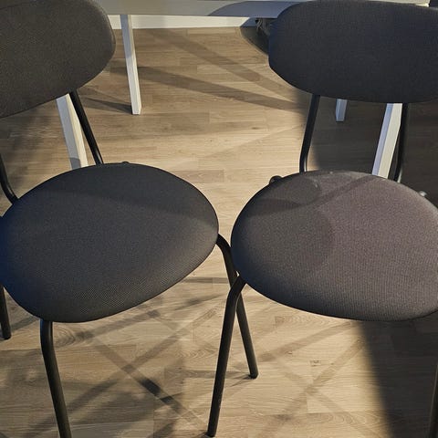 Farge: hvitt bord med svarte stoler (se bilde).