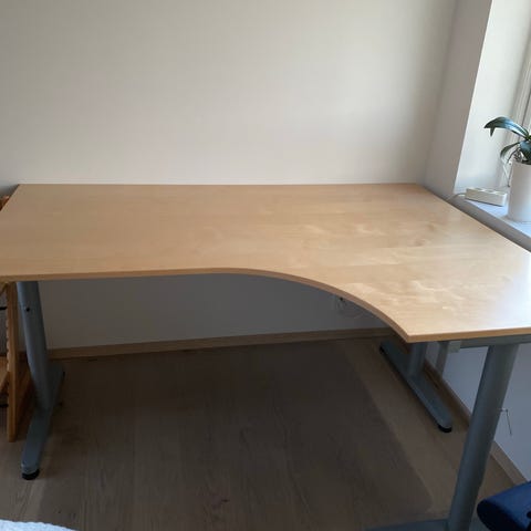 Selger IKEA skrivebordet mitt som man kan justere beina til ønsket høyde. Er ett par bruksmerker på platen men ellers fin til bruk.