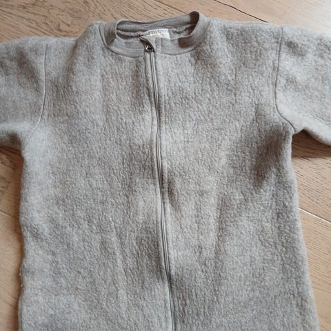 Nøstebarn Ull Heldrakt i blå farge, størrelse 116. Hull ved ene knappen, se bilde. Drakten er ellers hel og fin.