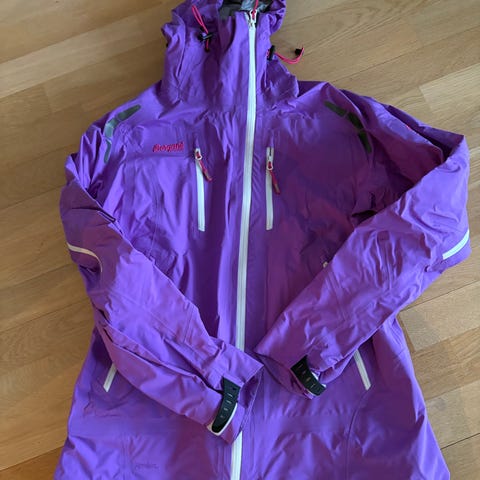 Bergans 3940 Cecilie jakke i str.S rosa farge og grått for. Justering nederst og bak på hetten. Åpne/ lufte glidelås under armene. Jakken er lite og veldig fint brukt og ser nærmest ny ut.