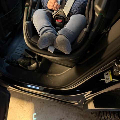 Bil stolen har ubrukt baby innlegg. setet er helt og pent. noen få nupper på enden av setet.setet er produsert i 2021. og er opp til 104cm. 360 graders rotasjon