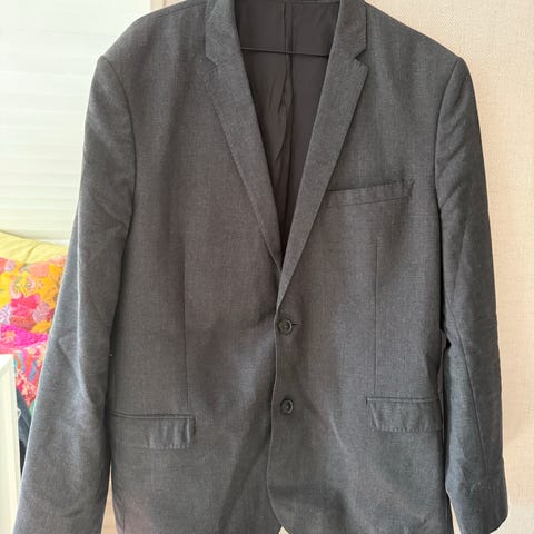 Dressmann XL Blazer i grå/sort farge, størrelse 58 for menn. Laget av polyester/viskose materiale. Blazeren har et trykt mønster og er designet for herrebruk. Sendes ikke.