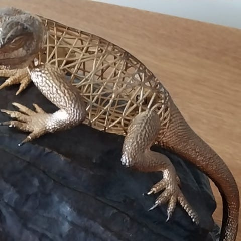 Dekorativ skulptur laget av messing med base i marmor. Selges på grunn av flytting. Må hentes!
