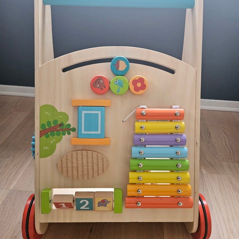 Gåvogn i tre med klosser