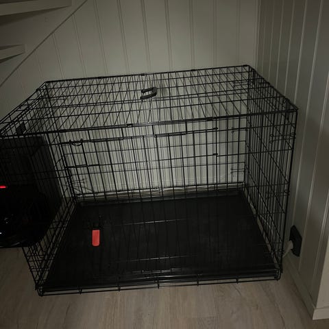 Selger et solid og romslig hundebur i størrelse XXL, da det dessverre har blitt for liten for hunden vår. Buret er knapt brukt, kun brukt et par ganger innendørs, og fremstår som tilnærmet nytt.