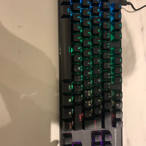 Tastaturet er pent brukt og fungerer helt som det skal. Ingen dobbelttrykk, alle taster og RGB fungerer godt.