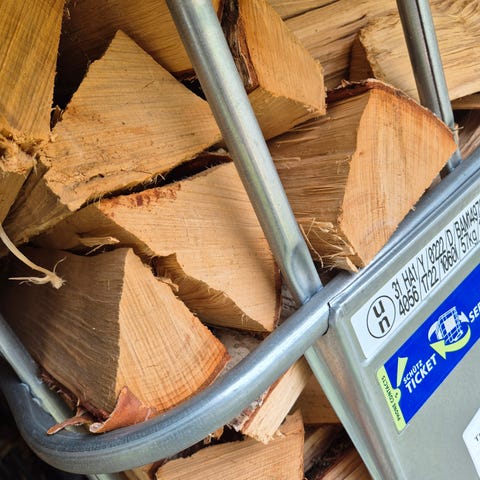 Ved, tørr bjørk i 1000 liters sekker på europall