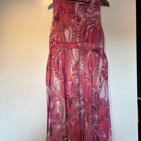 Lang sommerlig kjole fra Philippe i str 42. Den passa ikke meg. Kjøpt brukt selv.