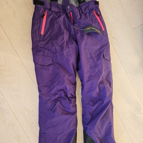 Bik Bok skibukse og jakke. Jakke i str S, bukse i str XS. Brukt av jente på slutten av barneskole, tidlig ungdomsskole. Ca 160 cm på bildene.