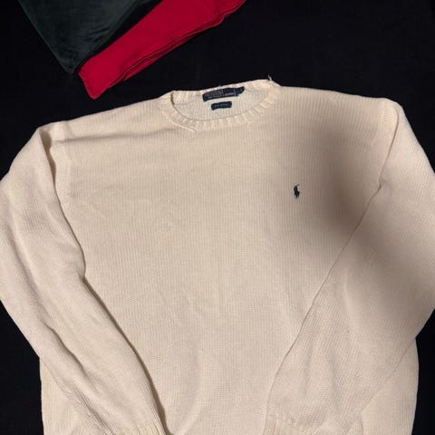 Pent brukt Polo Ralph Lauren genser i 100 % bomull. Klassisk modell med rund hals og brodert Polo-logo på brystet. Myk og behagelig kvalitet, perfekt til både hverdags og jobb.
