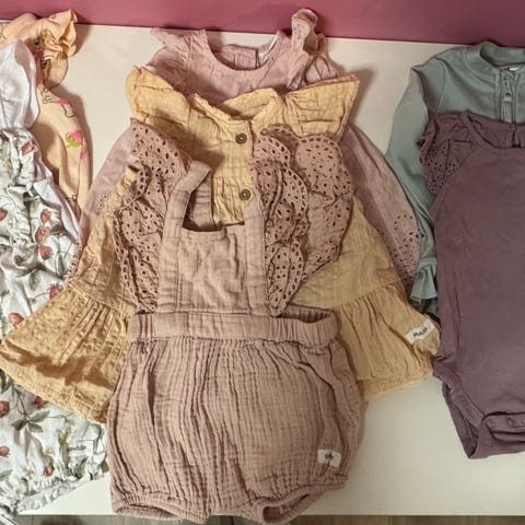 Sett fra newbie i str 68, buksa har frynser på rumpa.