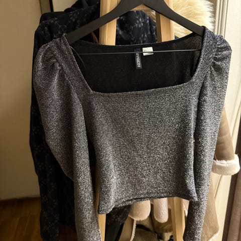 Ubrukt gjennomsiktig sort topp med perler og bling bling