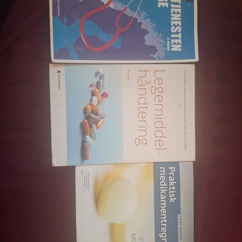 Tre lærebøker innen helse og medisin, inkludert temaer som legemiddelhåndtering, praksis medikamentregning, og førstehjelp. Bøkene dekker grunnleggende kunnskap og ferdigheter relevant for helsepersonell og studenter innen medisinske fag.