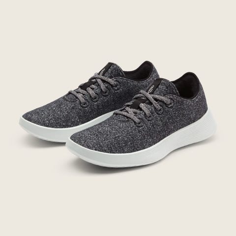 Selger et par Allbirds Men’s Wool Runners i fargen True Black med Cream Sole, størrelse UK 7 (tilsvarer ca. EU 40–41).