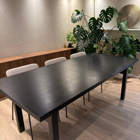 Stort spisebord med 2 ileggsplater + 4 stoler