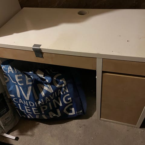 Pent brukt IKEA Micke skrivebord i «brunsvart».