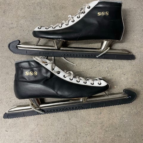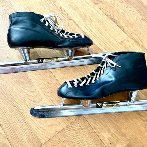 Vintage Ving lengdeløpsskøyter. Størrelse 42. I sort lær. Skøytene har svensk kvalitetsstål.