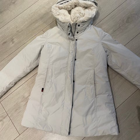 Veldig fin og varm dunjakke fra Woolland. Den er kun brukt et par ganger og har ingen tegn til slitasje. Anvendelig jakke som passer like godt til hverdags som til alpint.