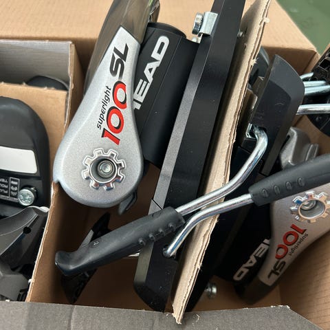Head Mojo 11 alpinski binding med Power Brake funksjon. Bindingen er tilpasset alpinski og har multifarge design. 2 sett bindinger. Sender ikke..