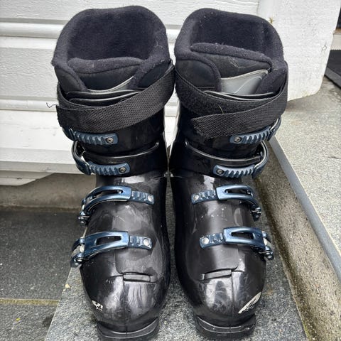 Lange skistøvler i blå farge med fire spenner for justering og god passform.