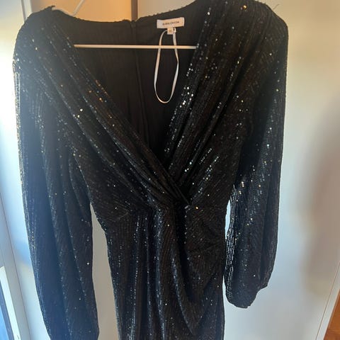 Nydelig paljettkjole i strl medium selges, den er litt stor i strl, jeg brukte et belte. Den passer m-l. Kun brukt en gang. Hentes i Trondheim eller selges mot frakt.
