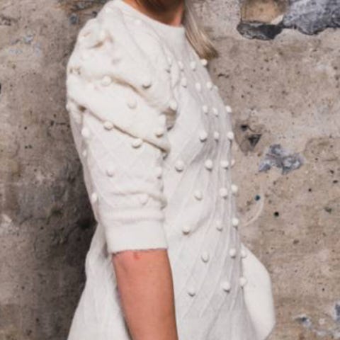 ella&il topp i beige farge, størrelse XL for dame. Laget av bomullsmateriale. Genseren har 3/4 lange ermer med lett puffet detalj ved skuldrene.
