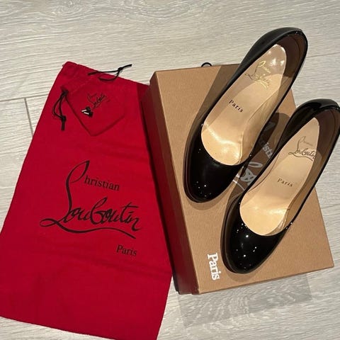 Pene Christian Louboutin pumps med slingback i 39.5. Fargen er pudderrosa /nude. 12,5 cm høy hel. Ingen spesielle merker utenpå skoene, -kun under på sålen og i sålen inni. Skinnet på strikken er ganske slitte. Selges derfor billig! Kun dustbag følges med. Se bilder for detaljer.