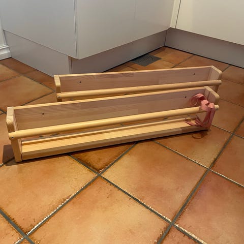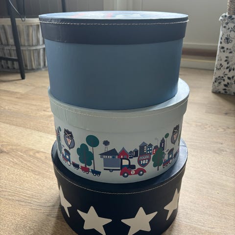 Det følger med en stor og en liten hvit oppbevaringsboks/skuff.