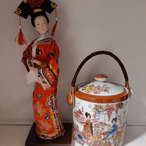 Dekor: Kroppene er vanligvis dekorert med livlige blomstermotiver, som krysantemum eller kirsebærblomster, ofte i rødt og grønt, og har et flerringsmønster malt rundt halsen.