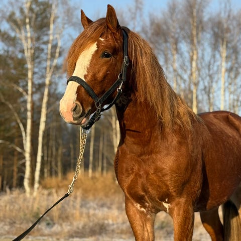 Snill og fornuftig hingst. Går sammen med en vallak ute i luftegården.