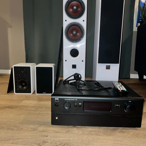 • Receiver: NAD T 748 AV Surround Sound Receiver (7.1 kanaler, enkel i bruk og ekte NAD-krefter).