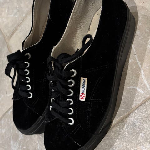 Superga sneakers i størrelse 39, svart farge. Skoene har snøring og høy såle.
