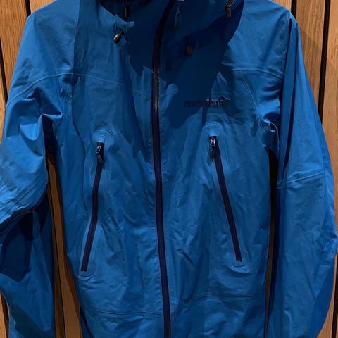 Teknisk skalljakke fra Norrøna i Falketind-serien, laget i Gore-Tex for høy vanntetthet, vindtetthet og god pusteevne. Jakken er pent brukt, med noen synlige bruksmerker, men uten hull eller funksjonelle feil. Alle glidelåser, membran og justeringer fungerer som de skal.