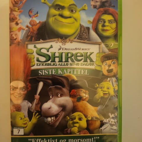 DreamWorks Shrek Siste Kapittel DVD med norsk tekst. Inneholder den siste delen i Shrek-serien. Passer for alle aldre som ønsker å se filmen på DVD. Forseglet Selges 50kr +porto. Kan også sende uten fiks ferdig. Se også mine andere annonser.