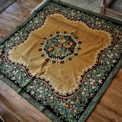 Selger to unike håndbroderte, antikke tekstiler, bestående av én duk og én løper, begge håndbrodert rundt år 1900. Arbeidene er utført med silkebroderi på bomullsbunn, i et uttrykk som kombinerer folkekunst og orientalsk/øst-europeisk inspirasjon.