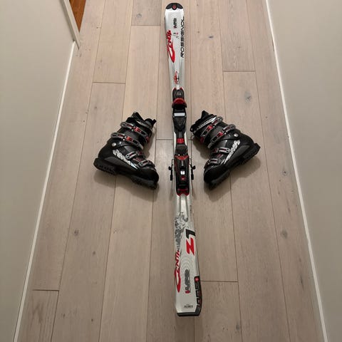 Komplette fine ski med carving, lettsvingte. Nypreppede uten sår eller skader.