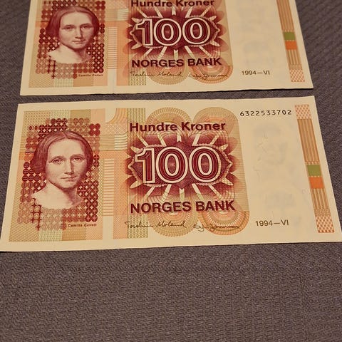 Perfekt 100 krone seddel fra 1971 seddelrekke 5