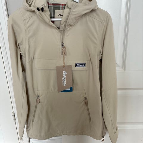 Kjempe søt Bergans jakke, som har en vintage look. Fargen tilsvarer en off-white farge som gjør hele jakken. Det er strl S og den har ingen tydelige bruksmerker, men er blitt brukt. Den er tynn og tilsvarer en type tur jakke. Perfekt å ha over turtøy! Selges da den bare har blitt liggende i skapet.. Håper du kan gi den et nytt og bedre liv! :)