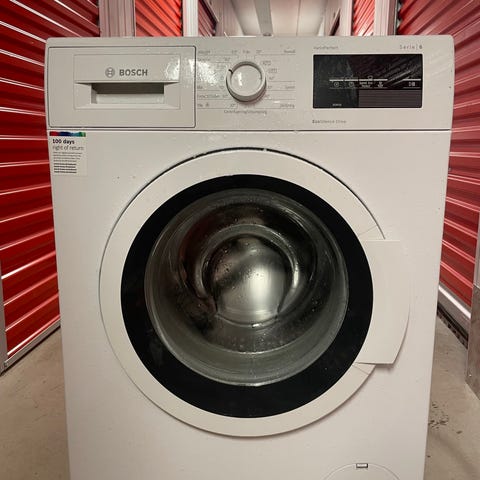 Bosch Exclusiv frontmatet vaskemaskin. Hvitt design med frontlading. Egnet for vanlig husholdningsbruk.