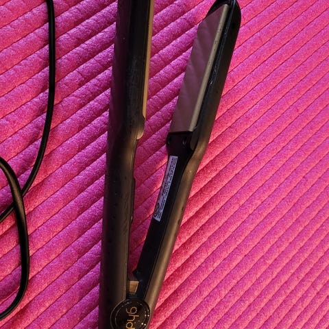 Selger min GHD rettetang. Den fungerer helt som den skal og varmer opp raskt. Det finnes noen små, nesten usynlige merker/kutter på tangen, men det påvirker ikke funksjonen.